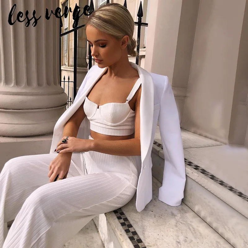 New lessverge Sexy two piece set 2 piece outfits for women Office lady white crop top pants Korean club party jumpsuit playsuit 2019
