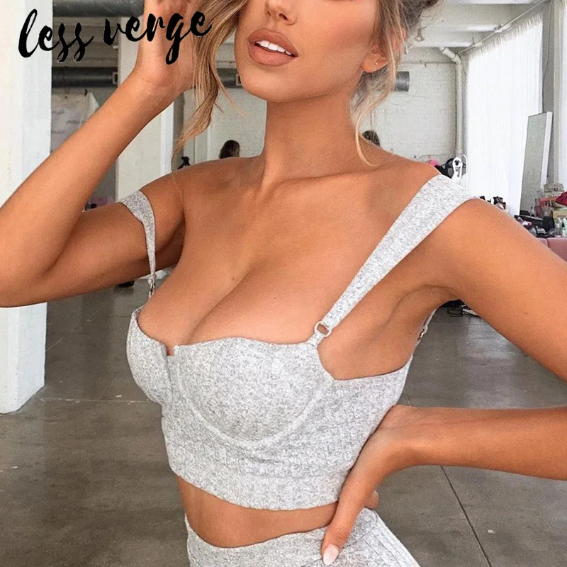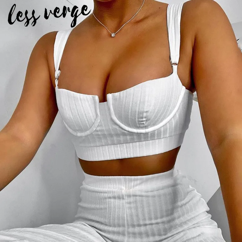 Images of lessverge Sexy two piece set 2 piece outfits for women Office lady white crop top pants Korean club party jumpsuit playsuit 2019 :