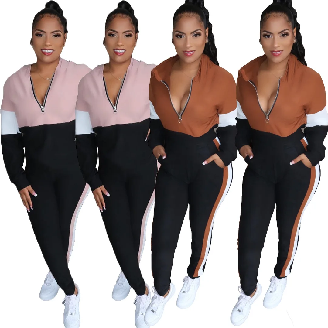 Sale Winter Women Sets Full Sleeve Hooded Top Pants Suits Striped Two Piece Set Night Club Tracksuits Sporty Fitness Outfits