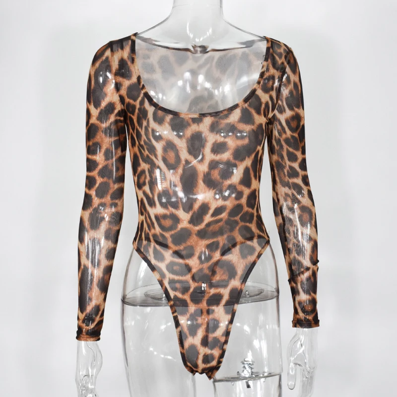 Images of NewAsia Garden Leopard Bodysuit Women U-neck Mesh Sheer Sexy Jumpsuit Party Long Sleeve Snake Print Playsuit Club Romper 2019 :
