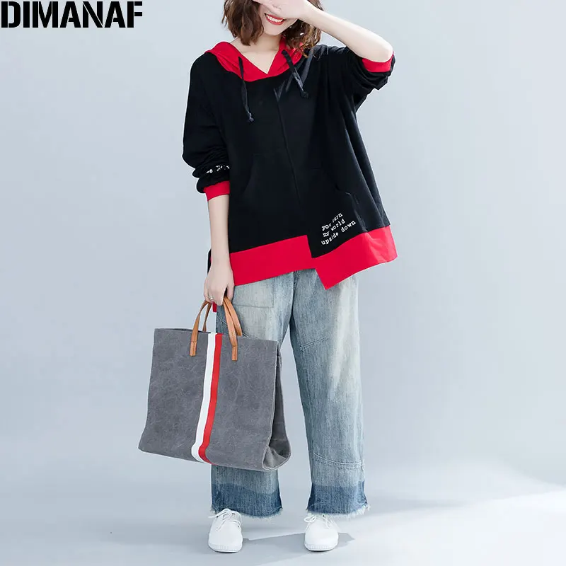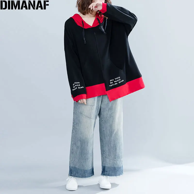 New DIMANAF Plus Size Women Hoodies Sweatshirts Autumn Female Pullovers Patchwork Winter Cotton Thicken Loose New 2019 Tops&Tees