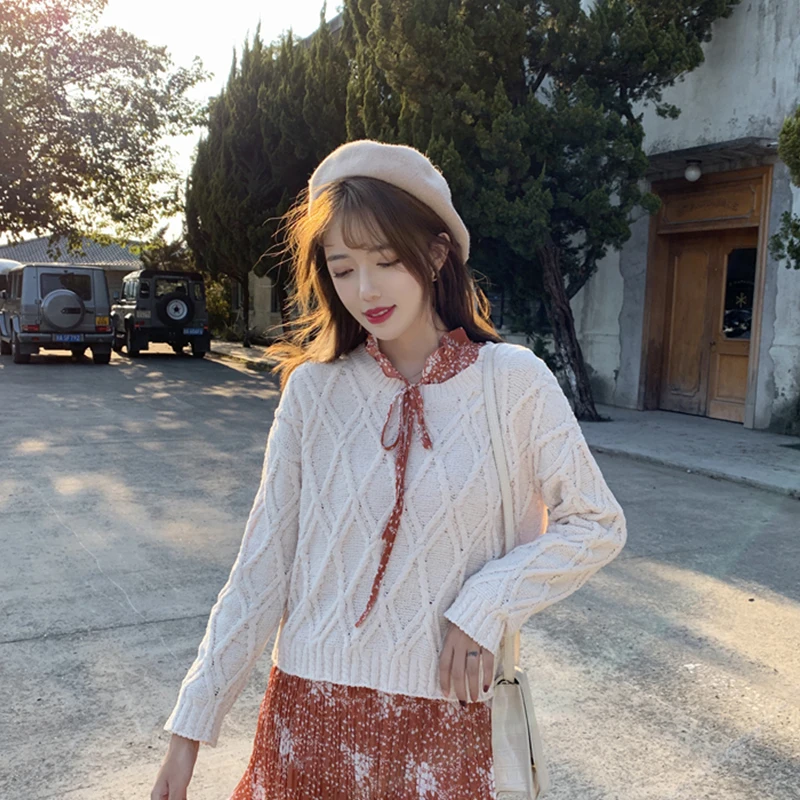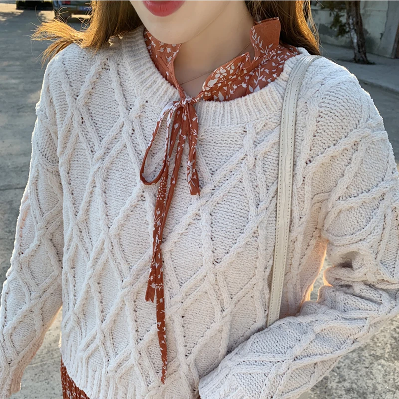 Images of Winter Spring Casual Sweater for Women Thin Knitted Pullover Plaid O-neck Female Sweaters Tops Clothes Ladies :