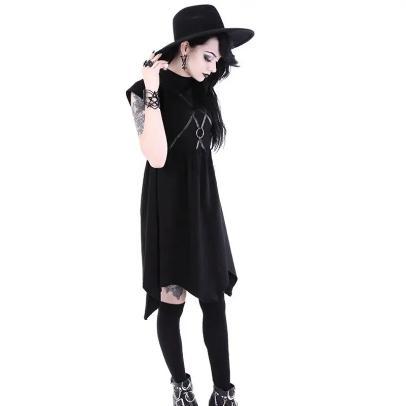 New Summer Dress Women 2019 Solid Black Goth Punk Sexy Vintage Elegant High Waist Asymmetric Trendy Gothic Streetwear Casual Dresses